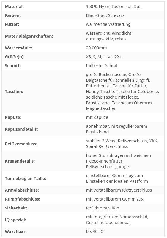 Wie alle IQ Dogsport-Produkte ist auch diese Jacke vollgepackt mit praktischen Funktionen, die Ihnen beim Training und bei Spaziergängen Unterstützung bieten. Die große Rückentasche bietet ausreichend Platz für eine Flexileine oder ein Beißkissen. Futter kann in den herausnehmbaren und waschbaren Futtertaschen verstaut werden – hygienisch und praktisch. Für alle, die mit Magnetsystemen (wie z. B. Top Matic) arbeiten, gibt es drei Einschubfächer auf der Innenseite, um Ihre Magneten sicher zu verstauen.